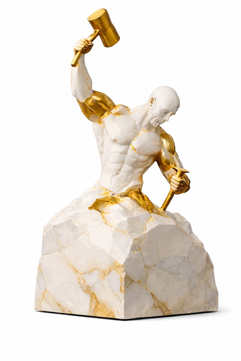 The dynamic pose of the figure holding a hammer symbolizes hard work and the power to shape one’s destiny. Perfect for living rooms, offices, or workspaces, this artistic piece enhances your interior with a modern and inspirational touch.