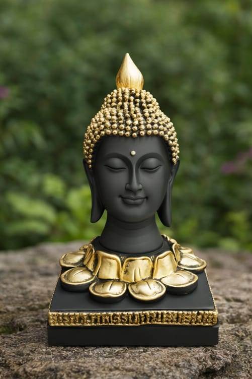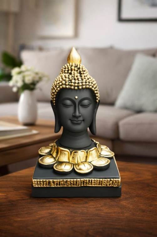 Black and golden Buddha idol for home decor spiritual statueElegant Buddha Idol for Home Decoration & Spiritual Peace